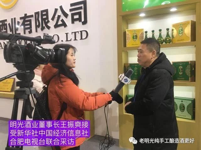 在明酒展廳內(nèi),明光酒業(yè)董事長(zhǎng)王振爽、明酒銷售公司總經(jīng)理劉邦、銷售公司黨支部書記錢軍等先后接受了新浪、今日頭條、安徽電視臺(tái)、合肥電視臺(tái)、新華社中國(guó)經(jīng)濟(jì)信息社等媒體采訪。