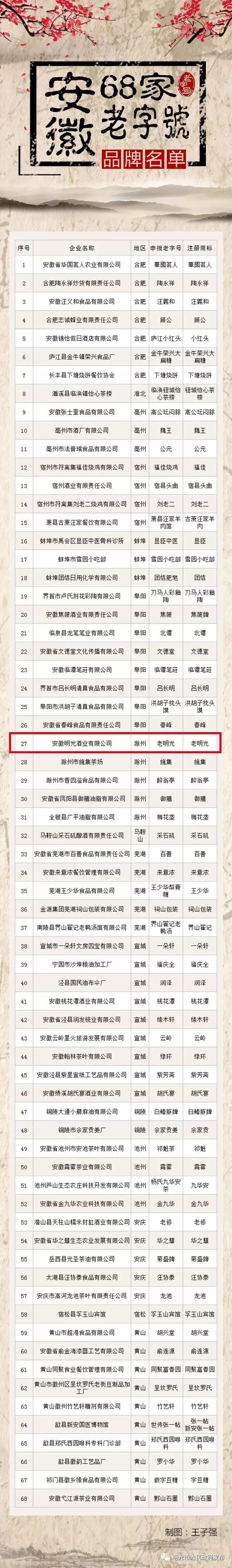 日前,商務廳發布了新一批68家“安徽老字號”名單, 其中,明光酒業有限公司的“老明光”品牌榜上有名。