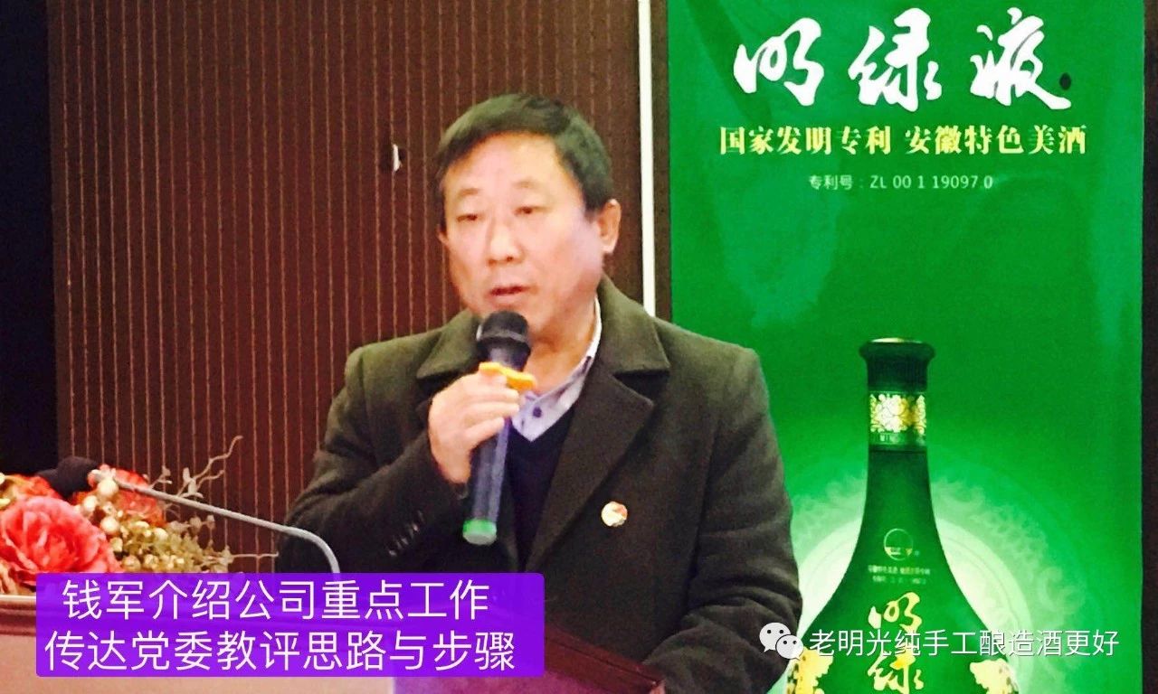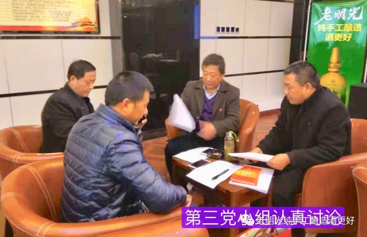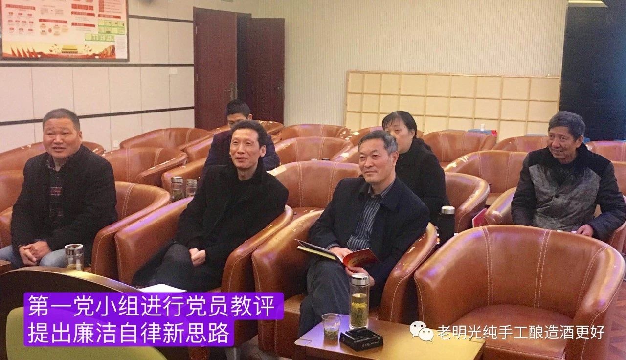 2018年12月1日,明光酒業銷售公司黨支部在滁州老明光營銷總部黨員活動室召開黨員大會。公司紀委書記閆興淮、黨委委員銷售公司總經理劉邦、總經理助理明光大區經理劉楚參加了大會,大會由黨支部書記錢軍主持。