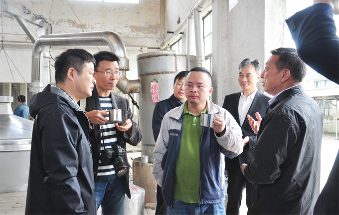 明光酒業總經理鞏建向考察團一行,介紹了明酒發展史、酒業經營理念和發展思路;介紹了明酒近年來生產經營情況;介紹了“2019年明光酒業國慶、廠慶70周年”系列活動籌備情況。