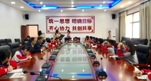 參觀結(jié)束后,在明光酒業(yè)會議室舉行座談,實小少先隊員首先向全國勞模趙玉龍獻(xiàn)上鮮花,提前祝他“五一”節(jié)快樂,少先隊小記者分別采訪了趙玉龍!實驗小學(xué)記者還專為趙玉龍寫了首贊美勞模的詩并集體朗讀,趙主席簡要介紹了明酒近年來品質(zhì)提升、品牌升級、服務(wù)升級的整體狀況;介紹了“2019年明光酒業(yè)國慶、廠慶70周年”系列活動籌備情況。