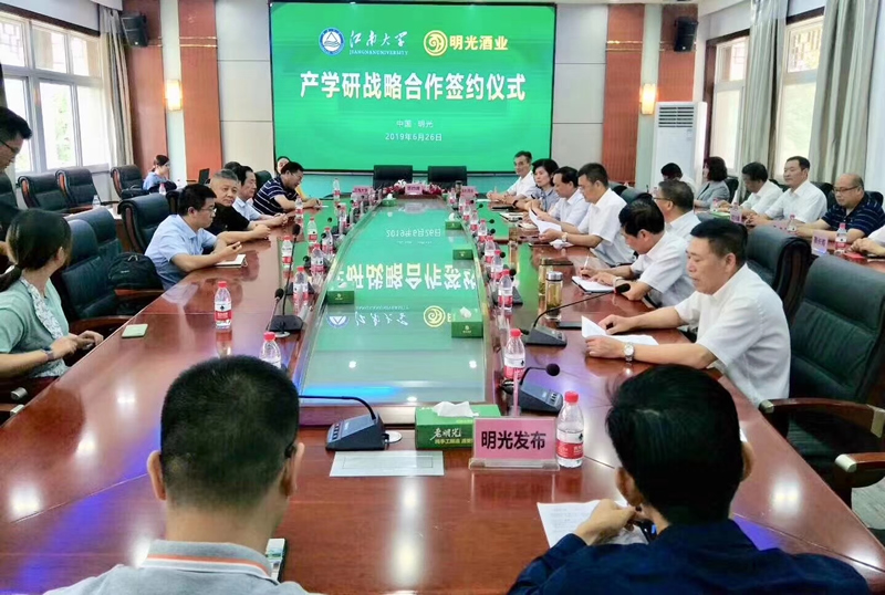 6月26日,明光酒業(yè)與江南大學(xué)產(chǎn)學(xué)研戰(zhàn)略合作簽約儀式在明光酒業(yè)舉行。江南大學(xué)副校長(zhǎng)、博士生導(dǎo)師、教授徐巖,安徽省酒業(yè)協(xié)會(huì)秘書(shū)長(zhǎng)李文漢,明光市政協(xié)主席張言平,江南大學(xué)生物工程學(xué)院博士、副教授陳雙,安徽大學(xué)健康研究所所長(zhǎng)張部昌,安徽大學(xué)生命學(xué)院博士、副教授黃訓(xùn)端,市財(cái)政局局長(zhǎng)李仁標(biāo)、經(jīng)信局局長(zhǎng)吳文良、科技局局長(zhǎng)劉平、市場(chǎng)監(jiān)督管理局局長(zhǎng)許叢峰、城投公司總經(jīng)理王超,明光酒業(yè)董事長(zhǎng)王振爽,明光酒業(yè)總經(jīng)理鞏建等領(lǐng)導(dǎo)出席。儀式由明光酒業(yè)董事長(zhǎng)王振爽主持。