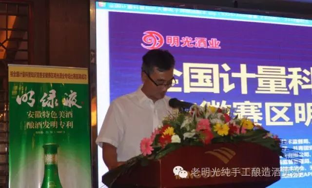 2016年9月23日,全國計量科普知識競答安徽賽區(qū)明光酒業(yè)專場在安徽明光酒業(yè)有限公司隆重舉行。此次比賽,由安徽省質(zhì)監(jiān)局、省科技協(xié)會、省教育廳、省科技廳、團安徽省委主辦;由省計量科學(xué)研究院、省質(zhì)量技術(shù)協(xié)會、安徽商報社、滁州市質(zhì)監(jiān)局、明光市質(zhì)監(jiān)局及安徽明光酒業(yè)有限公司承辦。賽事技術(shù)支持由無線合肥APP負責(zé)。參加競答活動的領(lǐng)導(dǎo)有:省質(zhì)監(jiān)局計量處處長王強、主任科員裴學(xué)平,省計量科學(xué)研究院主任汪麗萍,滁州市質(zhì)監(jiān)局副局長陳林、明光市副市長何玉忠,滁州市質(zhì)監(jiān)局計量科長方平、滁州市質(zhì)監(jiān)中心主任徐玲,明光市質(zhì)監(jiān)局局長孫紅、副局長丁景岳、明光酒業(yè)總經(jīng)理鞏建、行政總監(jiān)龐宗生、財務(wù)總監(jiān)周霞、生產(chǎn)總監(jiān)張成軍、總工程師王靜。參加競答活動的新聞媒體及領(lǐng)導(dǎo)有:安徽商報、合肥無線副總編李世兵、中國新聞網(wǎng)/安徽新聞總監(jiān)陳左、陳久安,明光電視臺、明光報、明光論壇、明光網(wǎng)事等媒體。競答活動由合肥無線主持人李享擔(dān)任。