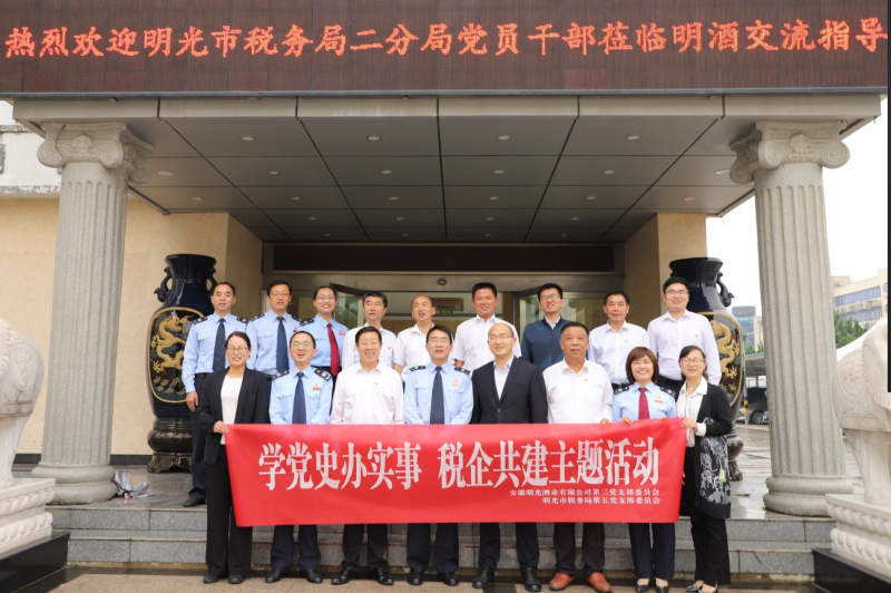 5月19日,明光酒業黨委第三黨支部與明光市稅務局第五黨支部聯合開展"黨建引領新思路 稅企共建促發展”座談會,共建活動在明光酒業水上會議室舉行。明光酒業黨委書記、董事長、總經理張博、總會計師李成彬、明光市稅務局二分局局長、第五黨支部書記孫飛等參加。