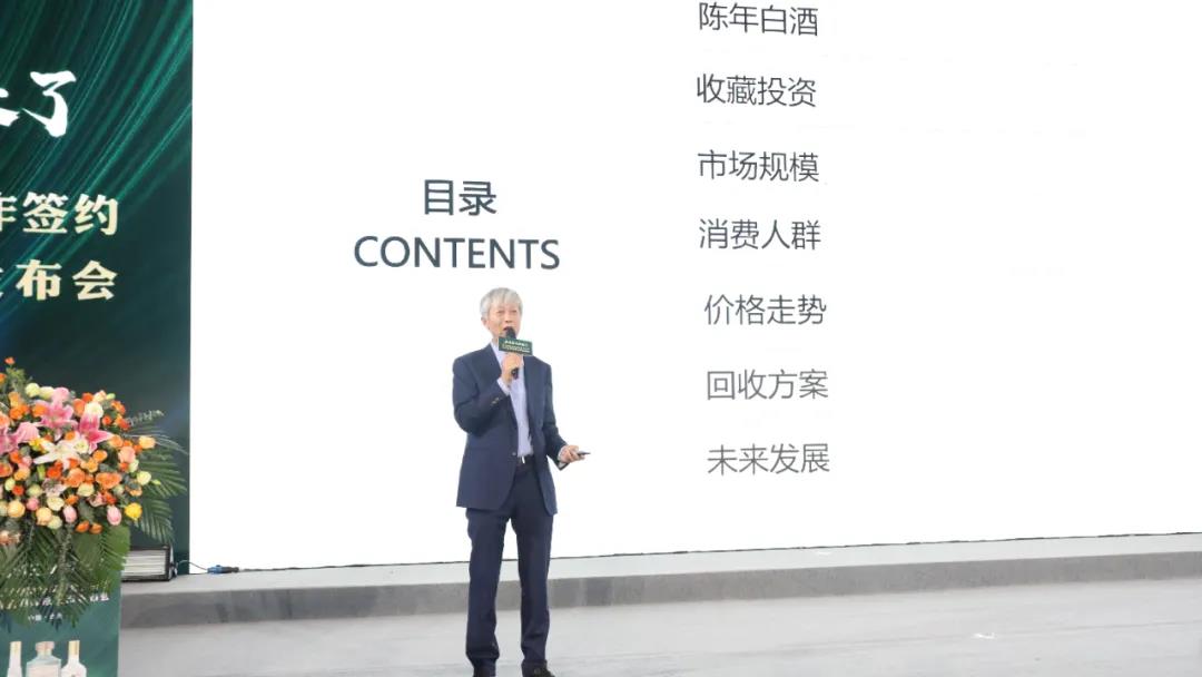 中國酒業流通協會名酒收藏委員會副秘書長、歌德盈香副總裁劉劍鋒講解老酒收藏。