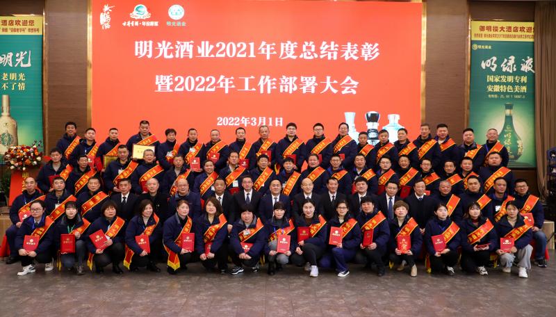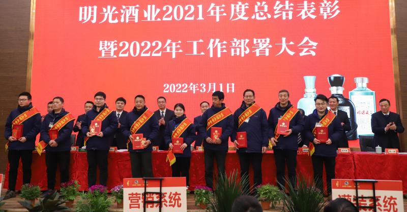 3月1日上午,明光酒業2021年度總結表彰暨2022年工作部署大會在御明樓舉行。明光酒業董事長華興安,總會計師李成彬,總經理助理丁峰,黨委副書記龐宗生等總辦會成員和黨委委員參加會議。