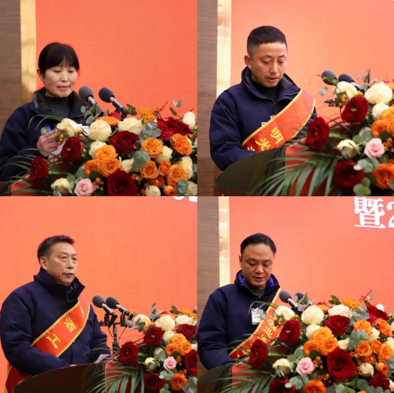 先進個人代表灌裝車間謝曉云、技術能手代表手工釀酒車間張景武、明酒工匠代表趙玉龍、先進集體代表銷售滁州分公司明光辦事處羅德成作表態發言,紛紛表示將珍惜公司平臺,提升自我,勇擔責任,開拓進取,用更加優異的成績回報公司,為明酒的快速發展做出新的更大貢獻。