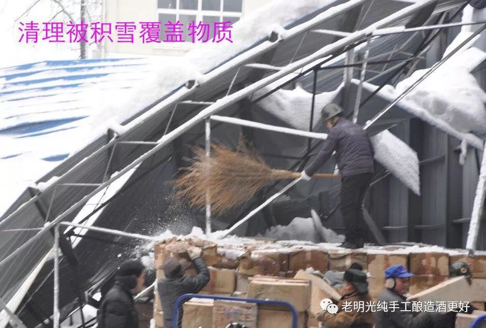 新年元旦剛過,十年未遇的特大雪災(zāi)降臨皖東,明光酒業(yè)各部門迅速反應(yīng),公司總經(jīng)理鞏建召開部門負(fù)責(zé)人緊急會議。針對災(zāi)情做出部署。提出:先社會、后企業(yè),先大家,后小家。突出重點:一是104國道積雪清理,保暢通;二是倉庫物質(zhì)轉(zhuǎn)運;三是車棚內(nèi)車輛移位;四是公司內(nèi)外樹木減負(fù)保護(hù);五是公司內(nèi)部道路清理。災(zāi)情就是命令,連日來,明光酒業(yè)數(shù)百人的抗災(zāi)救援隊伍,演繹了明酒雪中情。