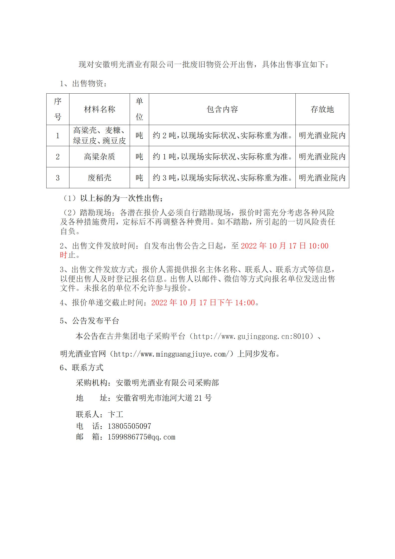 出售公告