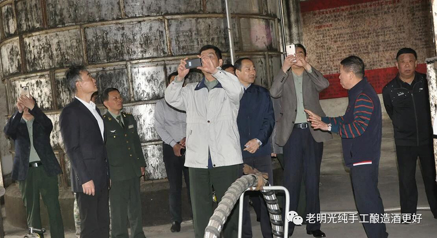 2018年4月12日,安徽省委常委、省軍區司令員楊征少將、滁州市委副書記朱誠、滁州市委常委滁州軍分區政委潘曉、司令員方平,明光市委副書記劉東,在明光酒業董事長王振爽、總經理鞏建等領導陪同下調研明光酒業。