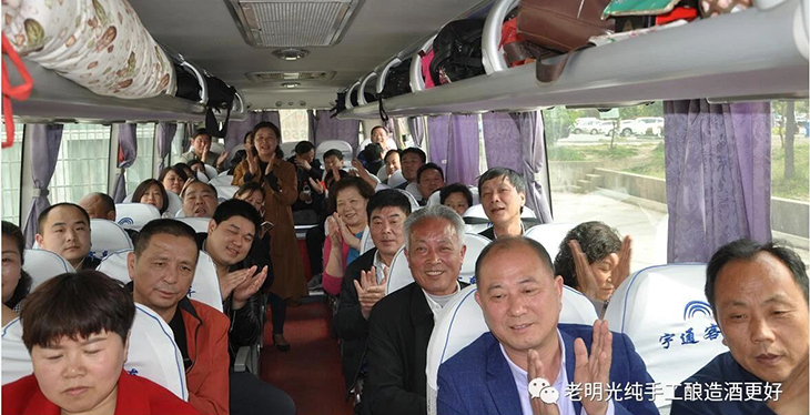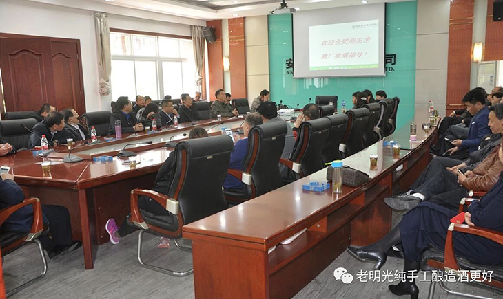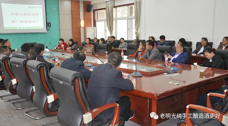 2018年4月15日,桃花盛開的周日,合肥東佳華團(tuán)購(gòu)客戶一行40余人蒞臨觀明光酒業(yè),嘉賓一行,在合肥大區(qū)經(jīng)理王軍等領(lǐng)導(dǎo)陪同下,先后參觀了明酒地下酒庫(kù)、釀酒基地等地。在明酒水上會(huì)議室和華亞宴會(huì)廳,嘉賓一行先后聽取了明光酒業(yè)工會(huì)趙玉龍主席、銷售公司劉邦總經(jīng)理、明酒銷售服務(wù)中心主任方道灌、銷售公司黨支部書記錢軍,關(guān)于“發(fā)揚(yáng)工匠精神,釀造每一瓶好酒”、“明光酒業(yè)2018年度戰(zhàn)略規(guī)劃”及“強(qiáng)化服務(wù)意識(shí),做好后勤保障”、“明光的由來(lái)及朱元璋的故事”等專題演講。
