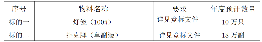 2、競標范圍:撲克牌、燈籠,具體品種及數量見下表