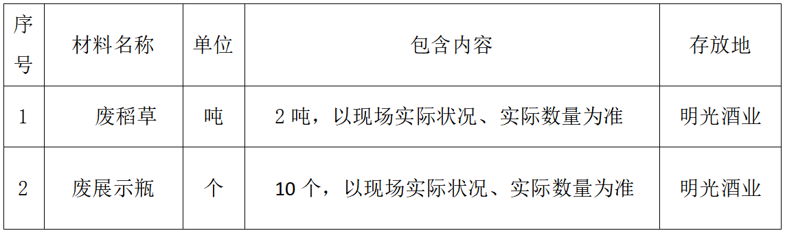 現對安徽明光酒業有限公司一批廢舊物資公開出售,具體出售事宜如下: