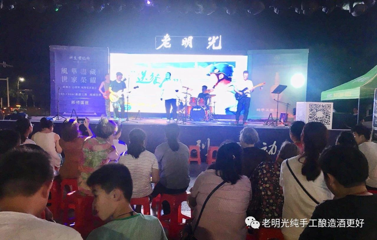 整場晚會,突出了“明光酒業送健康,天長市全民創建”的主題。晚會氛圍熱烈、節目上乘、組織規范,可圈可點。尤其明酒天長辦事處和天長華美商貿十分重視。一是在演出現場整齊展示數輛老明光送貨車;二是在演出現場架起數頂老明光專用帳篷,有序成列明酒系列產品百件之多;三是演出節點大屏播放老明光、明綠液宣傳片和明酒“升學宴”彩頁現場發放,形成互動;四是舞臺后側,面向新河路設置老明光大幅品牌宣傳畫,吸引眼球;五是演出環節明光酒業有獎問答和現場老明光集贊贈禮品,備受歡迎;冠名方氛圍和現場互動與納涼晚會有機相融,提升了晚會的品質和檔次。