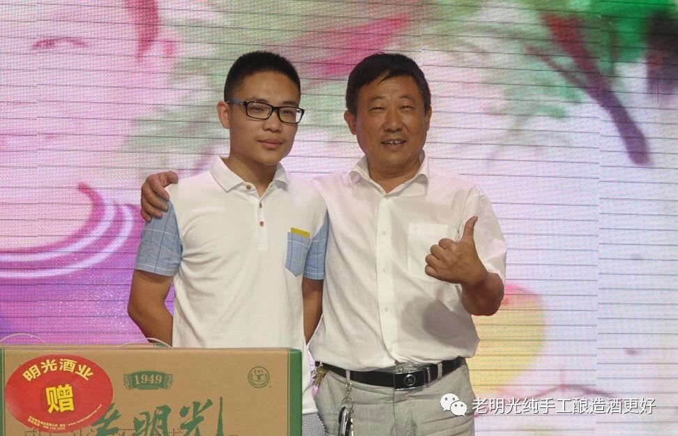 劉楚經(jīng)理發(fā)表熱情洋溢的祝賀詞,對趙翔同學榮獲明光市“高考狀元”以及在2018年高考中,取得優(yōu)異成績的全市莘莘學子們,表示熱烈祝賀。指出明光酒業(yè)發(fā)展不忘回饋社會,不忘支持教育事業(yè),明酒出臺“升學宴”特別政策,鼓勵學子帶著“明酒”奔向“光明”前程。