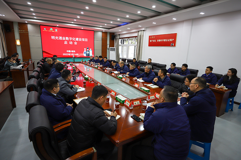 3月14日上午,明光酒業在水上會議室舉行數字化建設項目啟動會。公司黨委書記、董事長華興安,總會計師李成彬,紀委書記、副總經理劉杰,總經理助理丁峰,總經理助理、銷售公司董事長葉鳴出席會議。會議由李成彬主持。