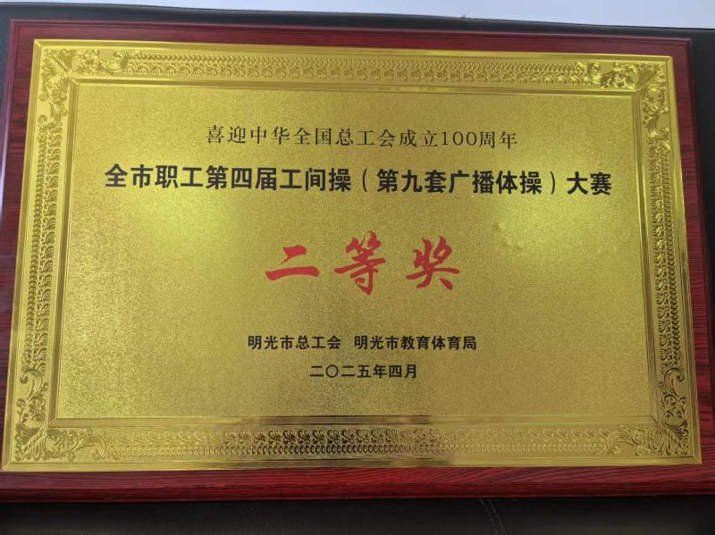 4月26日,由明光市總工會、市教育體育局主辦的喜迎中華全國總工會成立100周年全市職工第四屆工間操(第九套廣播體操)大賽在市新體育中心進行,39支代表隊近千名運動員同臺競技,明光酒業(yè)代表隊榮獲二等獎,位列第六。