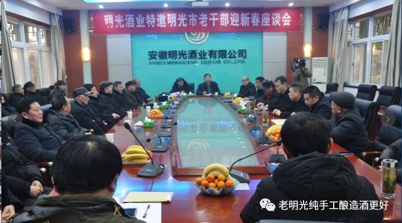 2019年1月6日下午,明光酒業召開老干部迎新春座談會。明光市副處級以上老干部、明酒退休老領導、明光市老干部局、明酒班子成員及明酒特聘酒文化博物館籌建組等50余人參加了會議,座談會由明酒黨委副書記龐宗生主持。